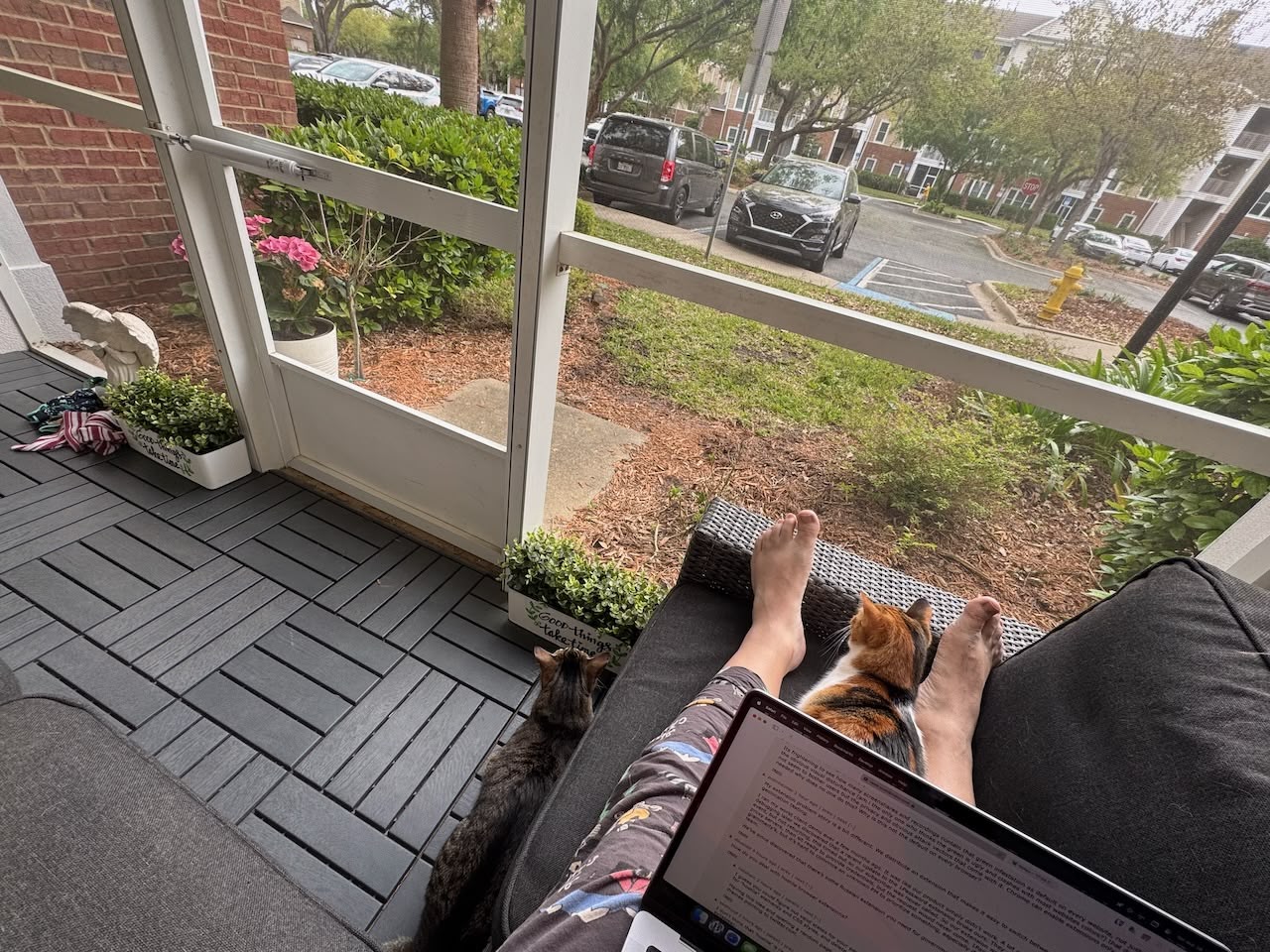 Another lovely day on the patio with the catios. This time there was a little drama with a squirrel on their lawn!